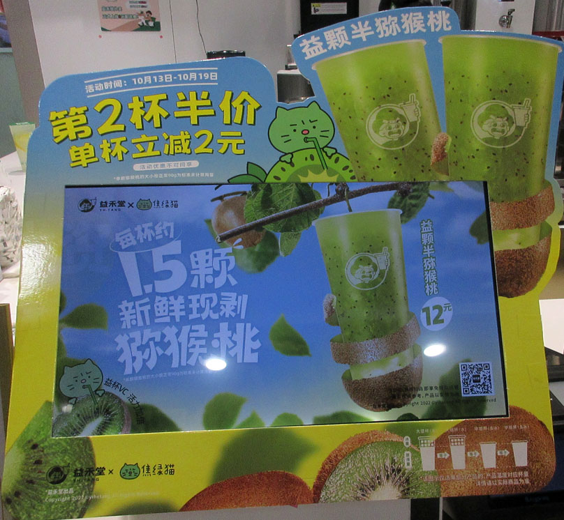 广中医一饭一楼西北角 益禾堂 益颗半猕猴桃12元 第2杯半价 单杯立减2元 时间10月13日-10月19日