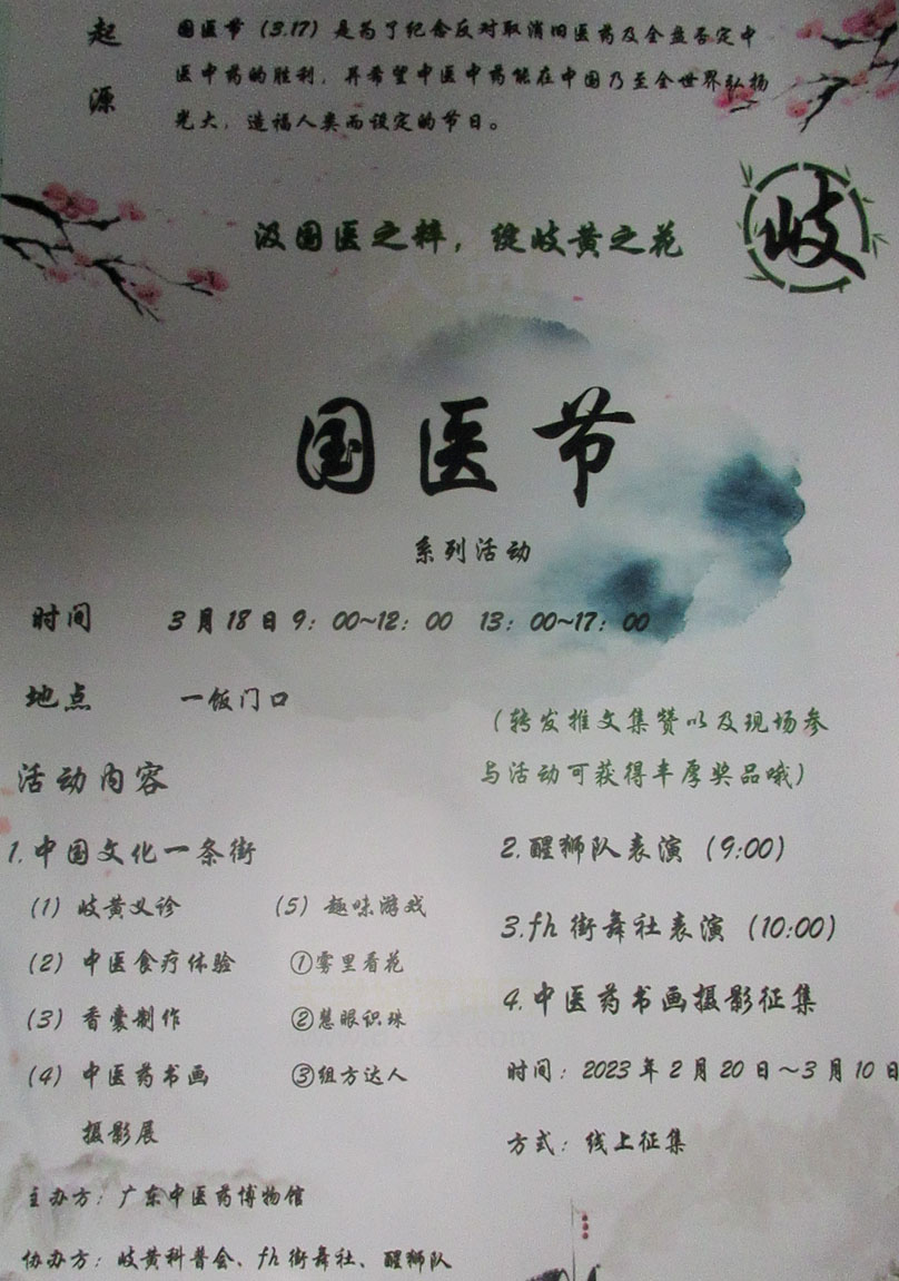 | 国医节系列活动 3月18日9点-12点 13点-17点 生活区一饭门前广场 | ||||||