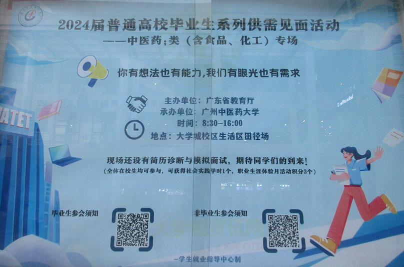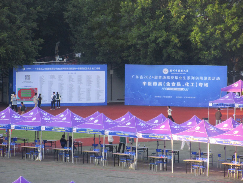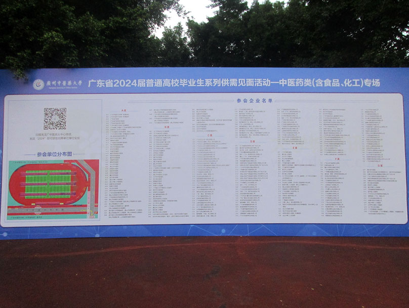 大学城广中医生活区运动场 明天11.16周四将举行一场中医药类含食品化工专场招聘供需见面会 具体上午8点30到下午16点 运动场临靠紧挨着中环广中医广药公交站 进出入口在中环广中医天桥下 附详细参会企业机构单位医院等