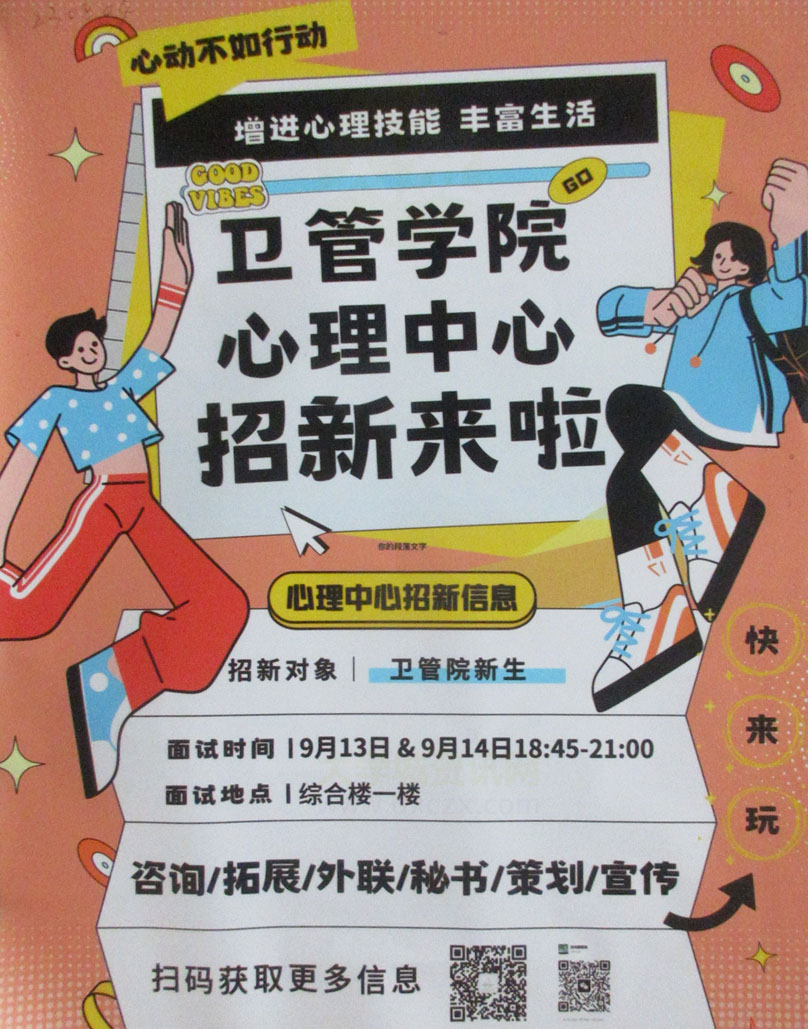 广中医-卫管学院心理中心2023招新 面试时间9月13日&14日18点45-21点 综合楼一楼
