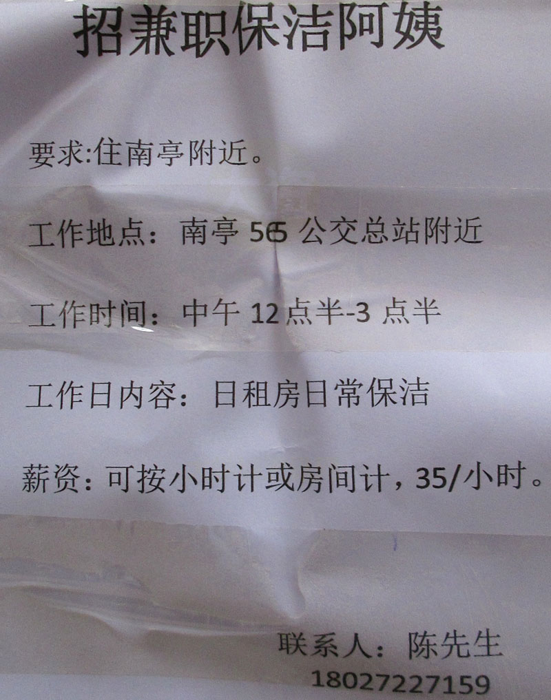 日租房日常保洁招兼职阿姨,要求住南亭附近