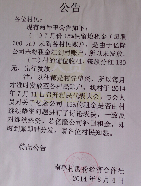| 关于村保留地租金和铺位收租分发的公告 | ||||||
