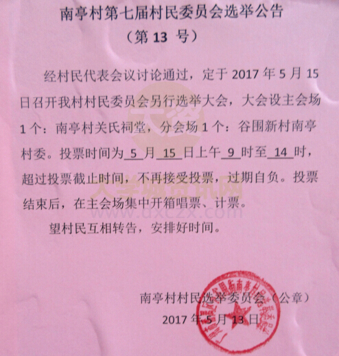 | 南亭村第七届村民委员会选举公告(第13号) | ||||||
