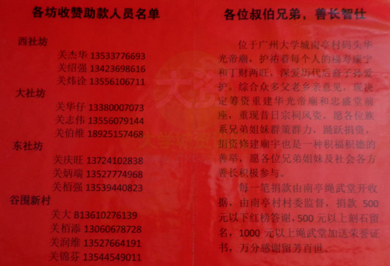 | 重建华光帝庙和忠盛堂前座筹资募捐公告 附各坊收赞助款人员名单 | ||||||