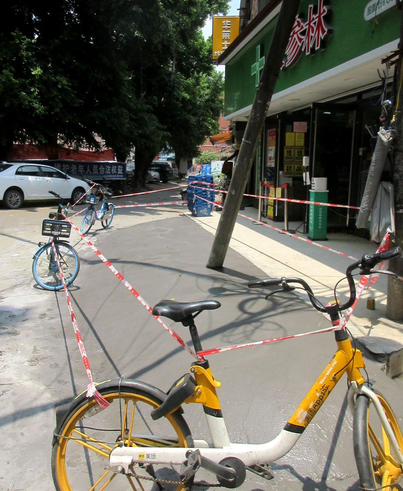 | 大参林药店门前新增砌水泥平缓斜面,与原地板瓷砖顺延出路面 | ||||||