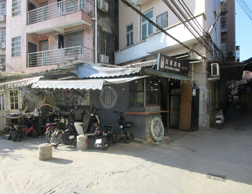西社大街中南 早前已经没开有一阵的叫岛集的小房子 现在看到好像又是装修成做酒馆的 叫双喜酒馆 看着内里应该还没完全装修好