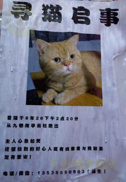 | 寻猫启事(南亭村西社大街九巷南亭画社跑出) | ||||||