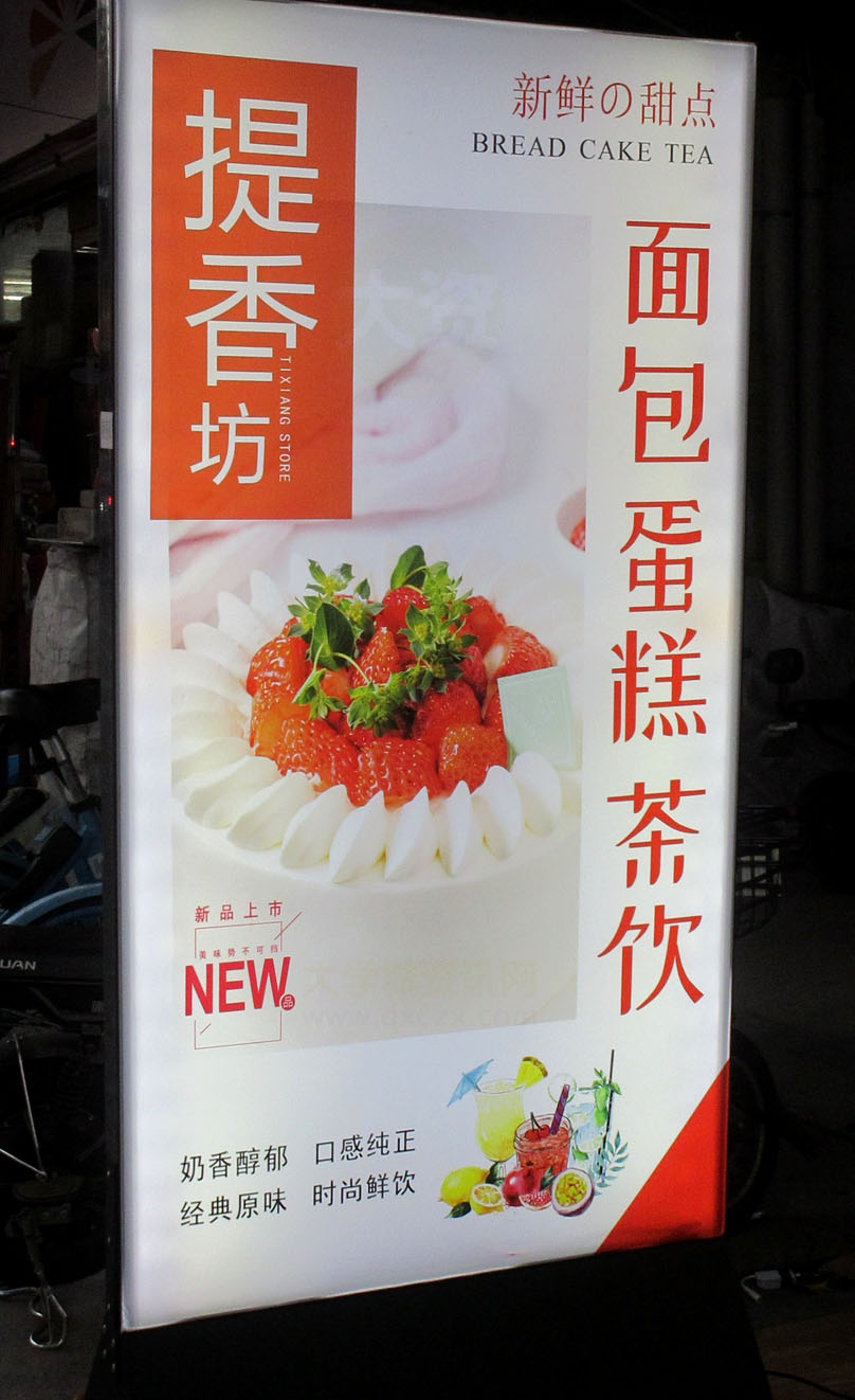| 南亭大道中 提香坊面包蛋糕店 也有做茶饮(奶茶饮品)了吗 (是夏天到了还是) 看到专门新摆了个较大显眼灯箱招牌 | ||||||