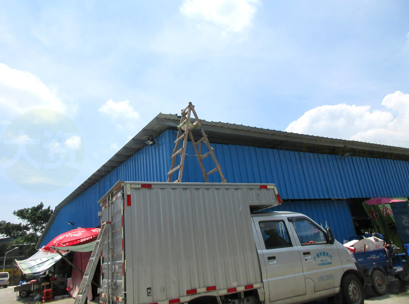 | 这看着是又,正午太晒,架梯上去洒水降温了,这顶棚当初做的时候,也是没流隔层的 | ||||||