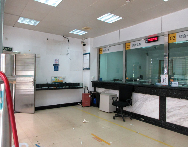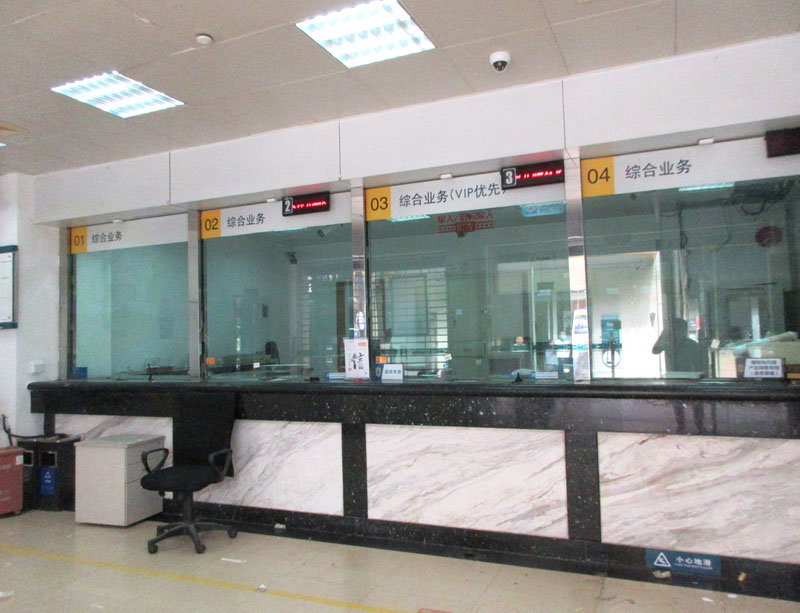 之前旧的,是四个综合业务窗口并排,这个新的现在看到是内里一个综合业务窗口,一个VIP窗口,然后侧边两个看着应该是普通类或者也是综合业务柜台 |