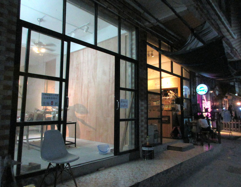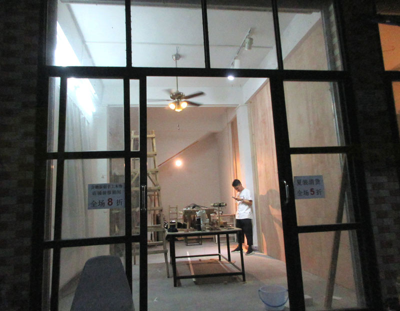 原先这个店两边是有连通的,好像就是一个店,现在看到是明显完全隔开了,并且说是要装修,店名叫言物原创手工木饰,估计往后主要卖木质制作或木雕之类的