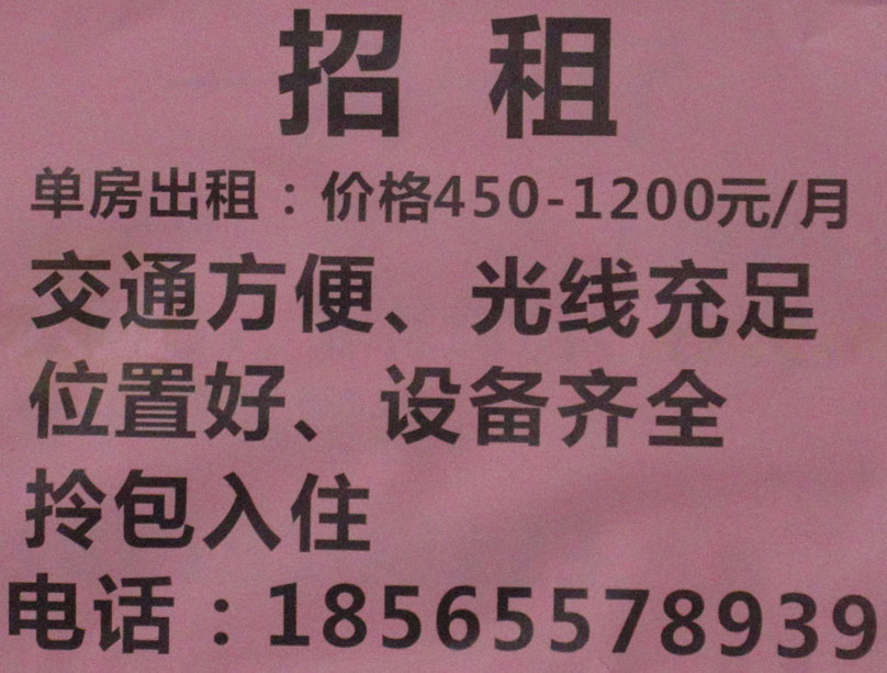 | 南亭村·单房出租:价格450-1200元每月 交通方便、光线充足 位置好、设备齐全 拎包入住 电话:18565578939 | ||||||