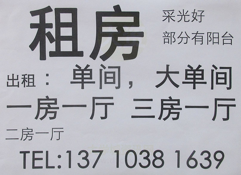 南亭-租房 出租:单间 大单间 一房一厅 三房一厅 二房一厅 采光好 部分有阳光 13710381639 |