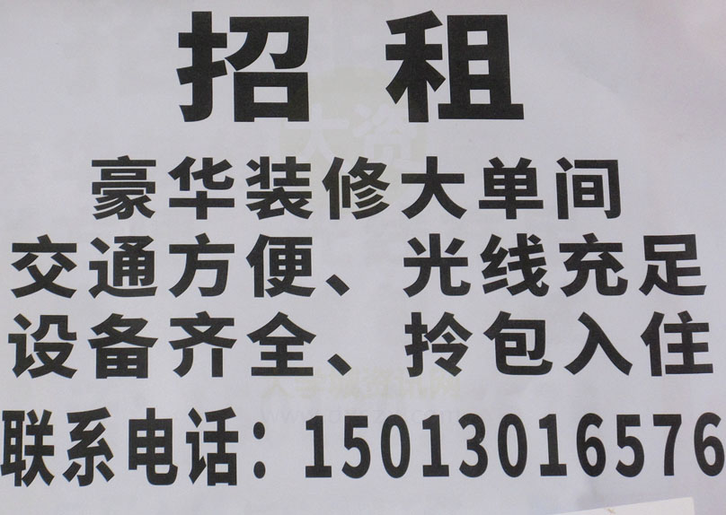 | 豪华装修大单间招租 交通方便、光线充足、设备齐全、拎包入住 联系电话:15013016576 | ||||||