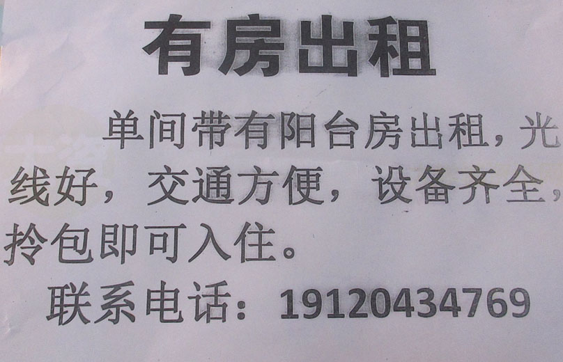 | 南亭-有房出租 单间带有阳台房出租,光线好,交通方便,设备齐全,拎包即可入住 联系电话:19120434769 | ||||||