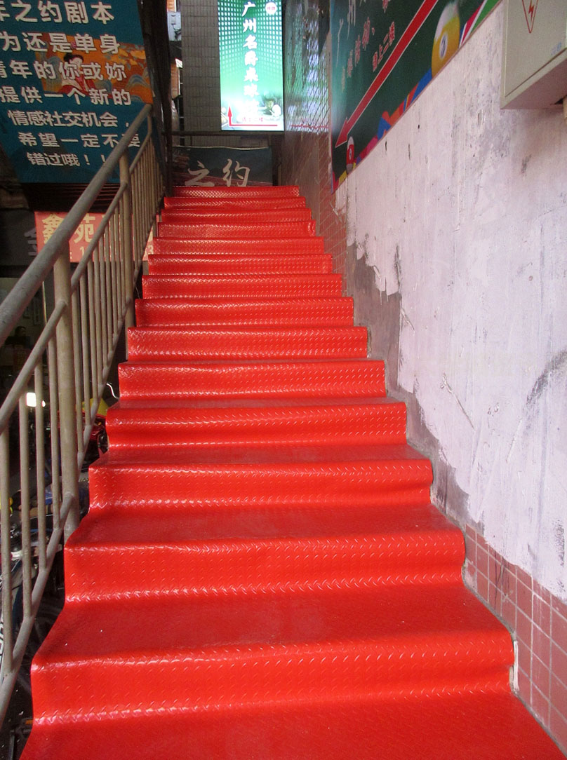 这中间的上下楼梯还专门铺了一层定制式的铁皮片,踩着感觉也还可以,可能刚弄好还是,颜色看着有点浓红过艳 |