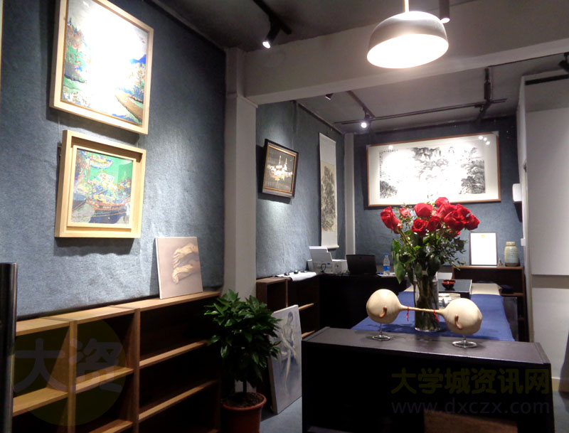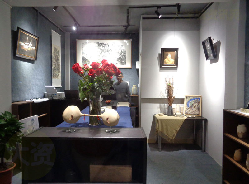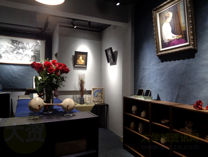 可以看到挂放摆的都是一些充满艺术气息的作品,比如绘画、物具、雕塑等,甚至似乎还看到有陶瓷制品