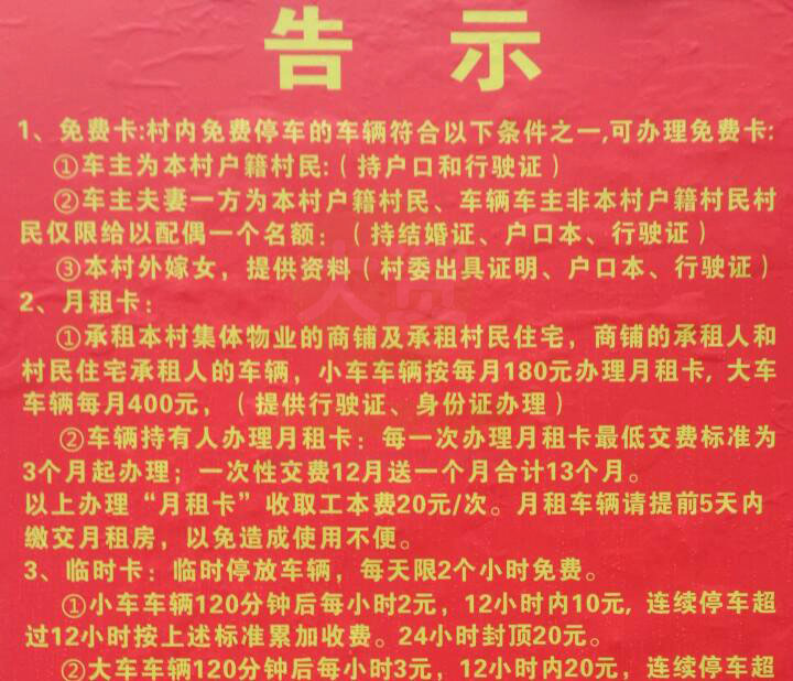 | 南亭村委关于9月份起村内停车免费卡月租卡临时卡的告示 | ||||||