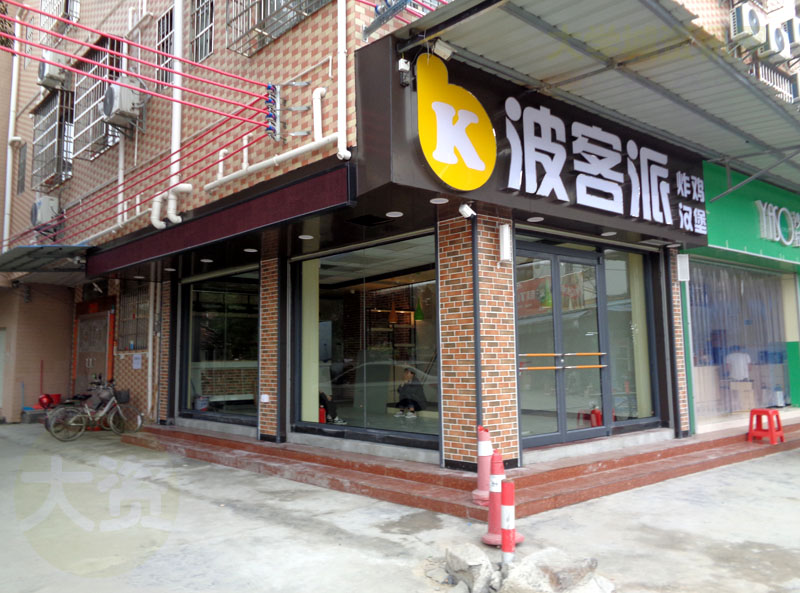 下朗大街中这家装修有20余天的店,今天终于看到店名了,叫波客派,还显著副标炸鸡汉堡,看来是做炸鸡汉堡为主的了。