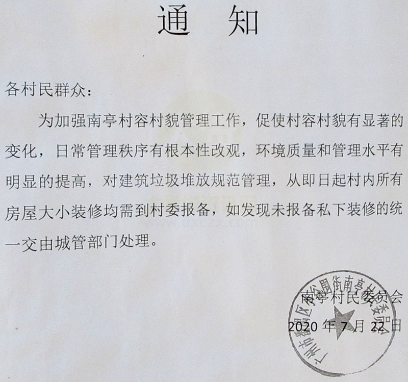 | 村委会通知-即日起村内所有房屋大小装修均需到村委报备 | ||||||