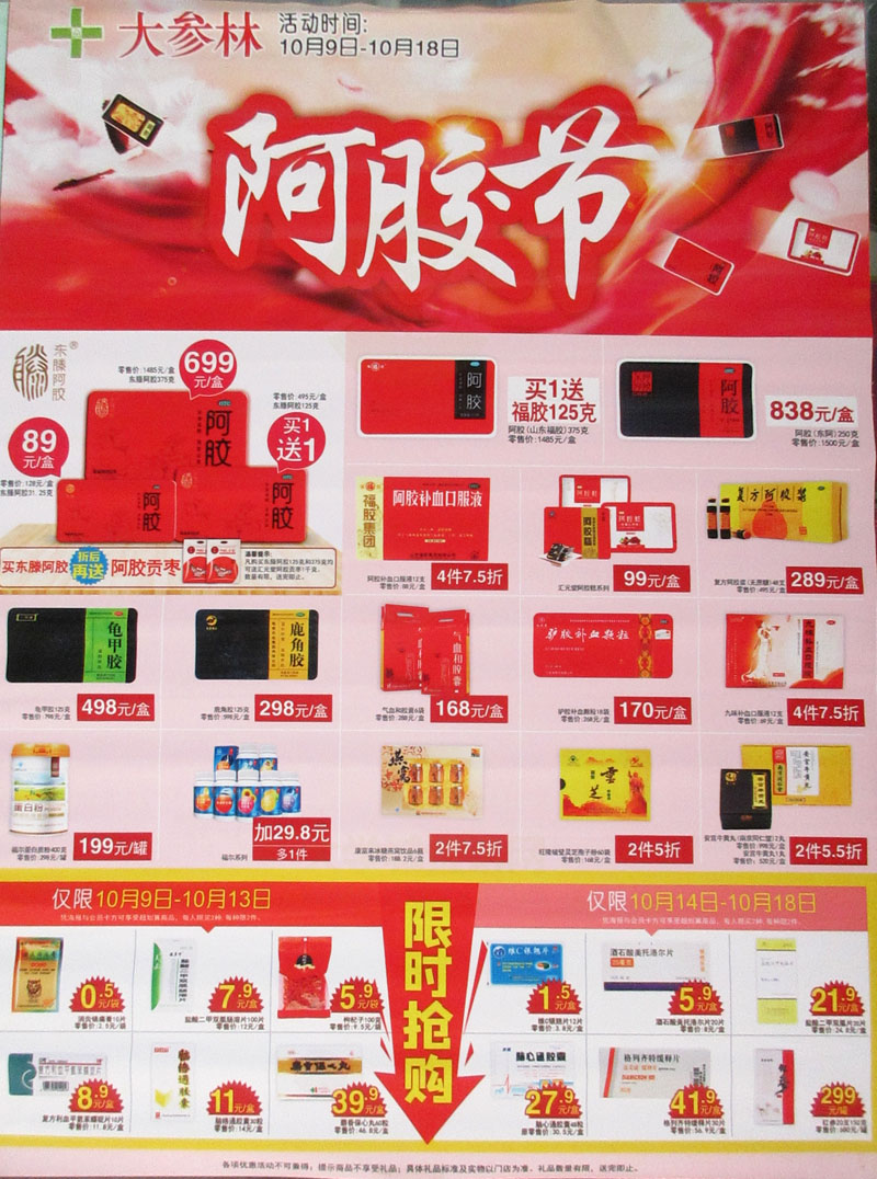 | 大参林阿胶节送好礼多特价多优惠10.09-10.18 | ||||||