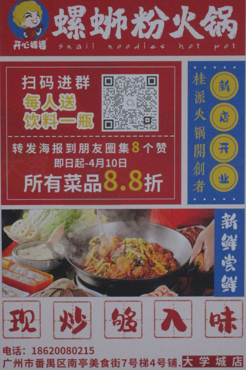 | 两周多前看到的七号楼南 当时在装修的原禾记煲仔饭 已改做螺蛳粉火锅 发圈集赞菜品有8.8折 | ||||||