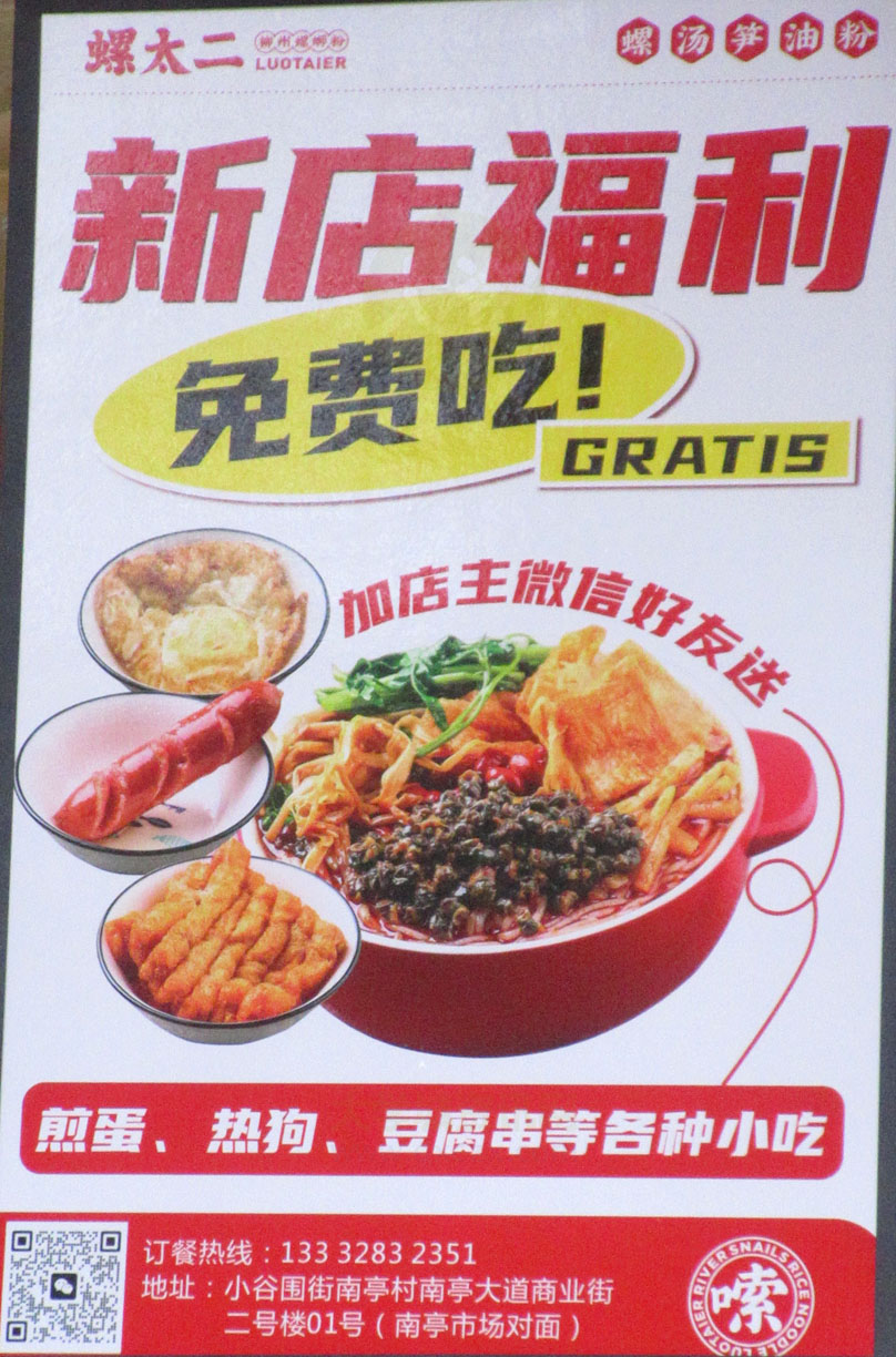 南商街二号楼东北角临街 螺太二螺蛳粉 好像是已经新装好在开业or试业了喔 新店福利-加店主微信免费送煎蛋、热狗、豆腐串等各种小吃