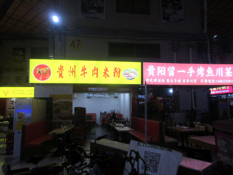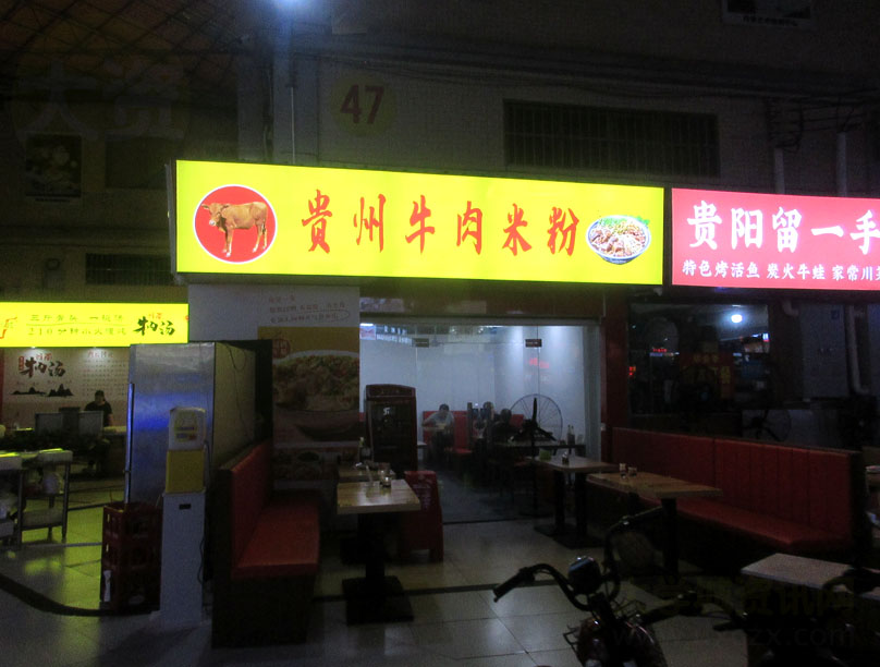 商业街八号楼南西角 先前在开的山锅粉&老长沙吃货铺 看到好像已经改做叫贵州牛肉米粉 看这店名和门前摆设,是不是隔壁留一手老板屯过来连开的