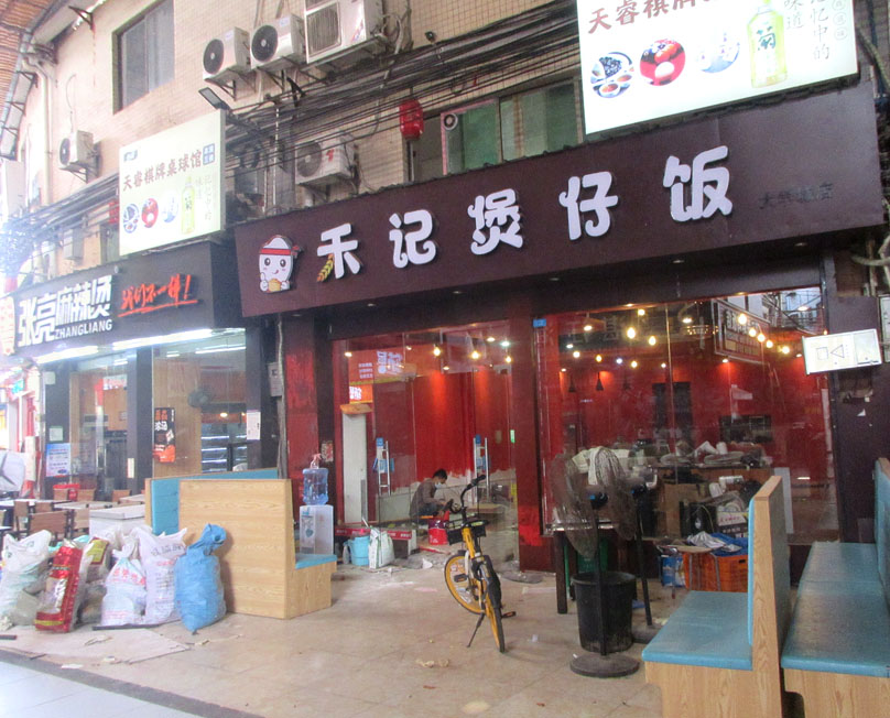 南商街七号楼南 禾记煲仔饭好像在装修 看着可能是里面环境提升改造一下或者升级一下 也不排除准备更改做别的
