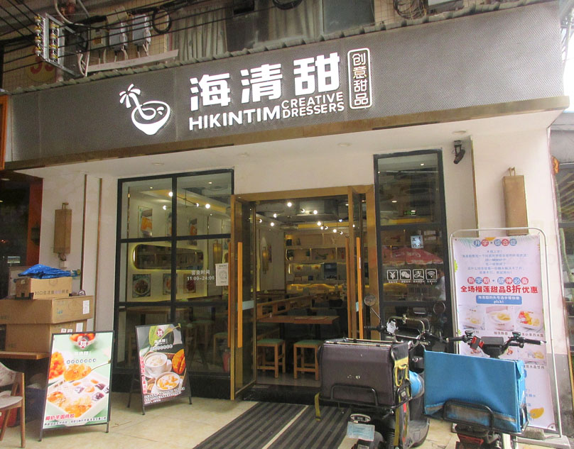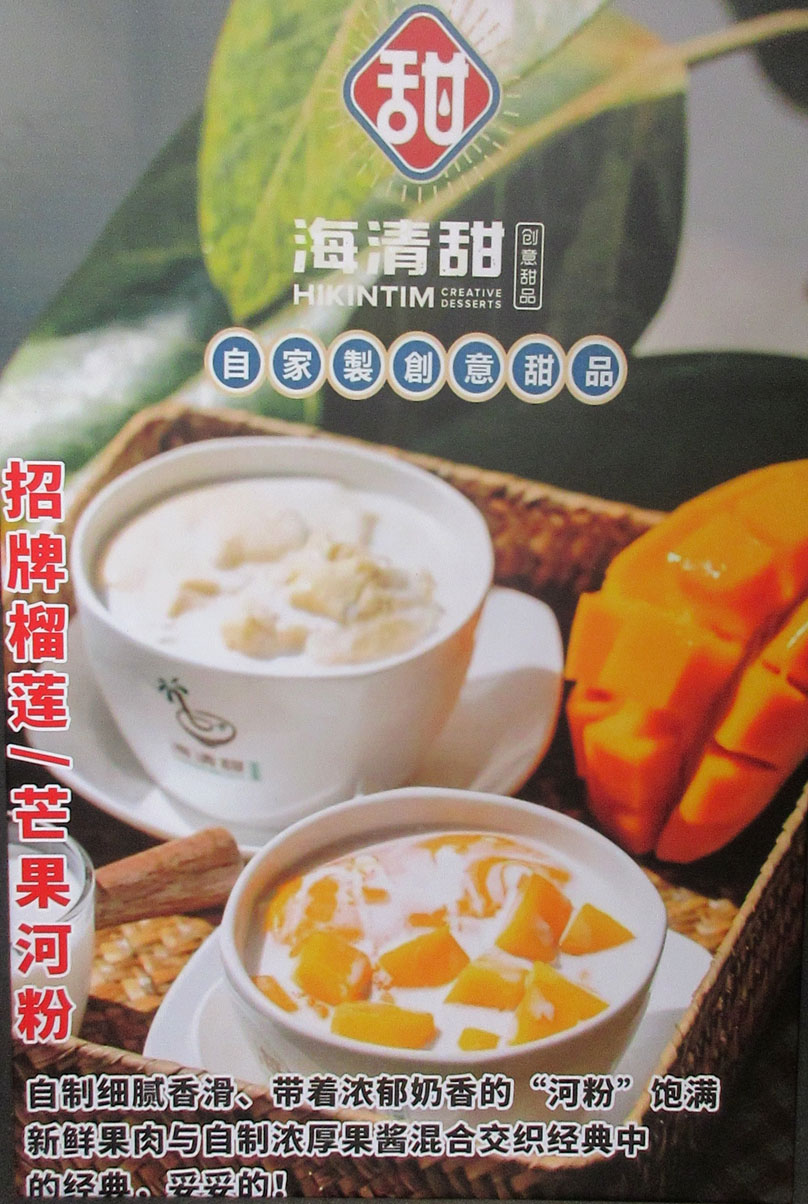 南商街二号楼西南角 海清甜创意甜品 自制招牌榴莲&芒果河粉、椰奶芋圆桃胶