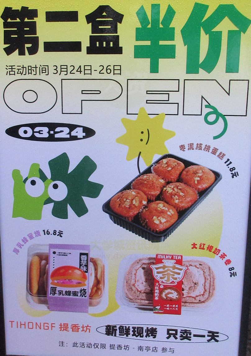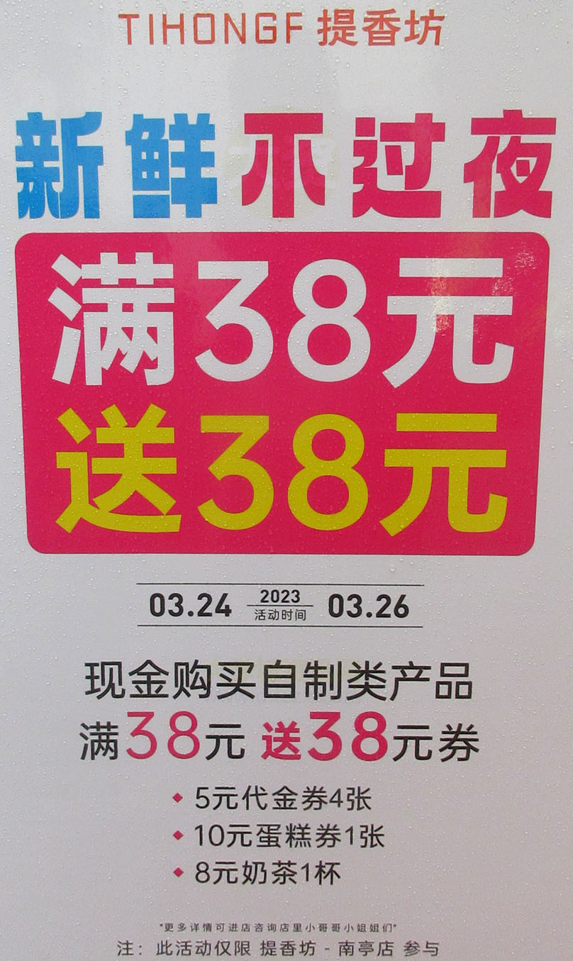 | 南亭商业街十号楼北列中 提香坊蛋糕店已经新装开业 开业期间3.24-3.26优惠活动福利赠送等还是比较多的 | ||||||