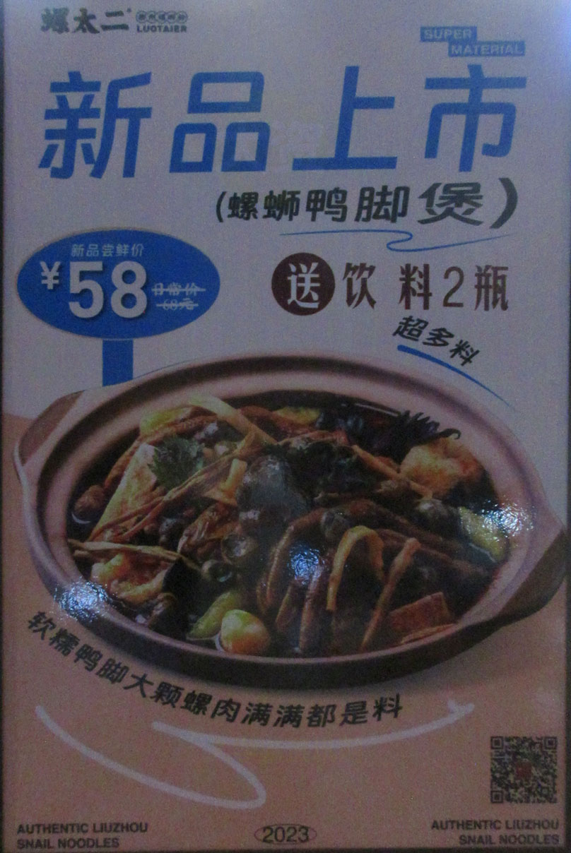 南亭商业街二号楼东北角临街 螺太二螺蛳粉 新品-螺蛳鸭脚煲 尝鲜价58元 送两瓶饮料