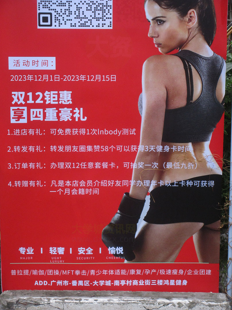 | 南亭商业街四号楼北端楼梯上三楼 鸿星健身俱乐部 双12优惠活动 12.1-12.15 | ||||||