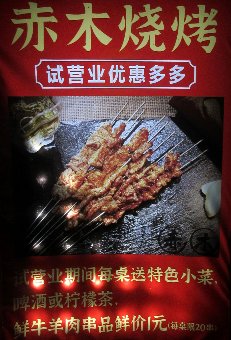 南亭商业街一号楼东列北 赤木烧烤已经在开始试营业了 试营业期间福利-每桌送特色小菜,啤酒或柠檬茶;鲜牛羊肉串品鲜价1元(每桌限20串)