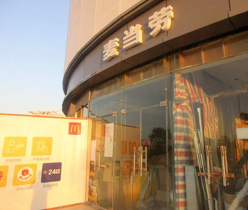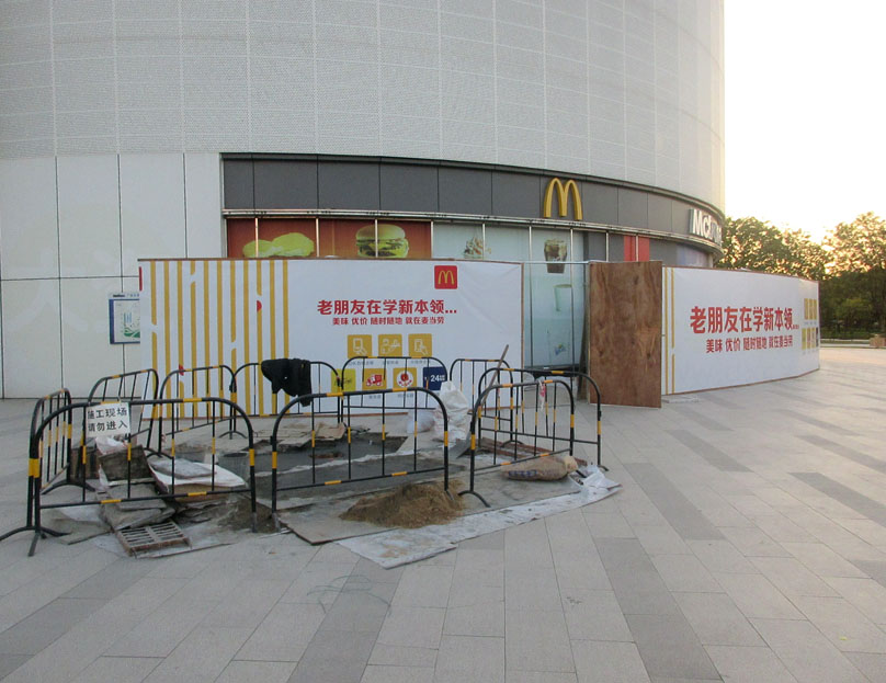 虽然没像隔壁肯德基那样大兴土木全店式装修 麦当劳的装修也是有在进行的 就是声响和进度可能还相对较小 两店隔那么近,麦当劳是否有考虑新装后门面或入口增开到靠北侧向着目前广场的主出入口方向呢