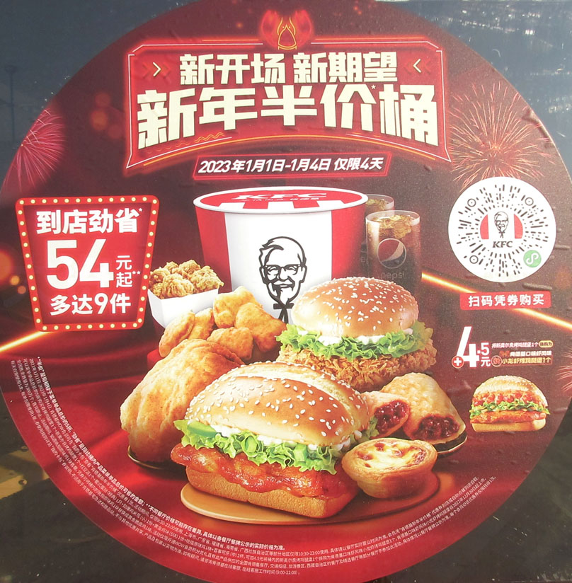 肯德基2023元旦新年半价桶 到店劲省54元起,多达9件 扫码凭券购买,仅限2023.01.01-01.04共4天,另+4.5元还可将新奥尔良烤鸡腿堡1个换购为新品-小龙虾烤鸡腿堡1个