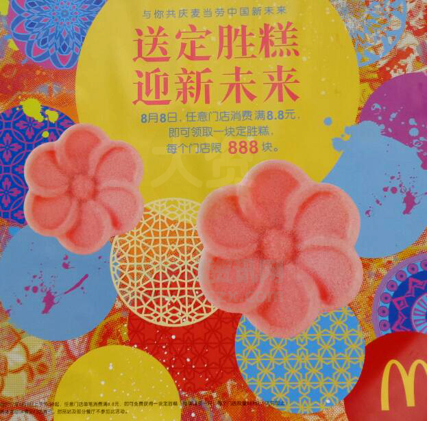 | 与你共庆麦当劳中国新未来 送定胜糕迎新未来 8月8日消费满8.8元即可领取 | ||||||
