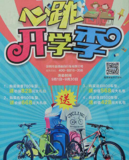| xds喜德盛自行车店 心跳开学季购买送大礼包 活动时间9月1日-9月30日 | ||||||