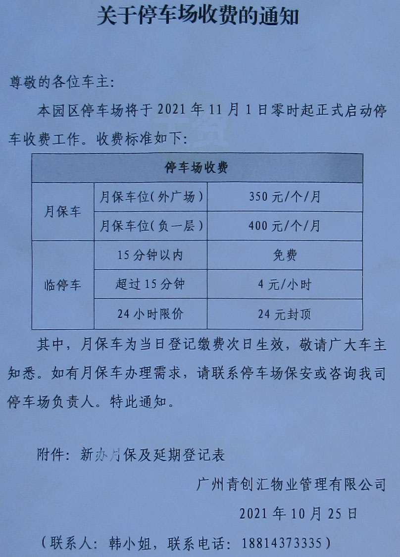 | 北亭青创汇停车场下月起(11月1日)将正式启动收费 具体价格细则分月保车和临停车 | ||||||
