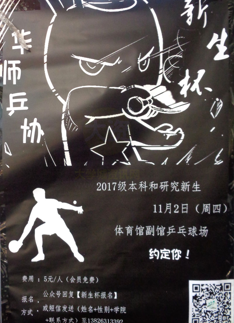 华师乒协新生杯参赛讯息 2017级本科和研究新生 11月2日