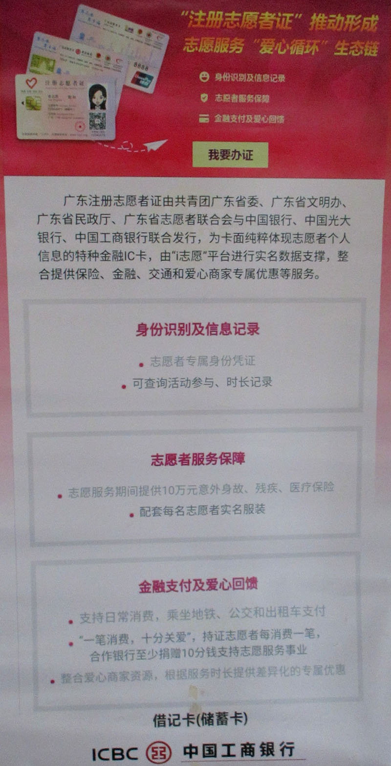 与各银行合作的志愿者证办理 继续在生活南区楠园架空层进行