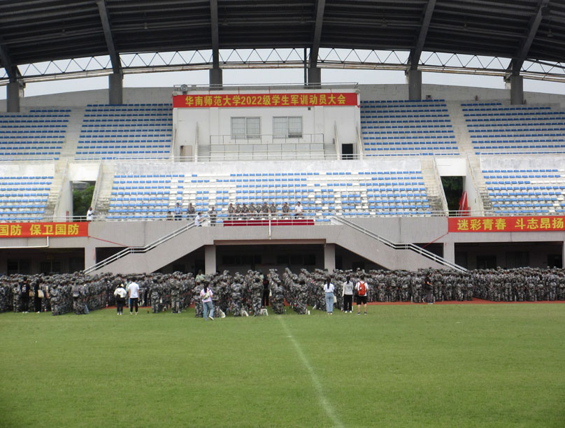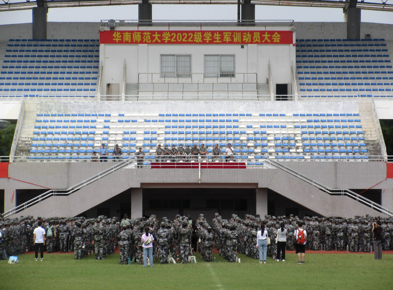 华南师范大学2022级学生军训动员大会今天上午在教学区运动场展开进行