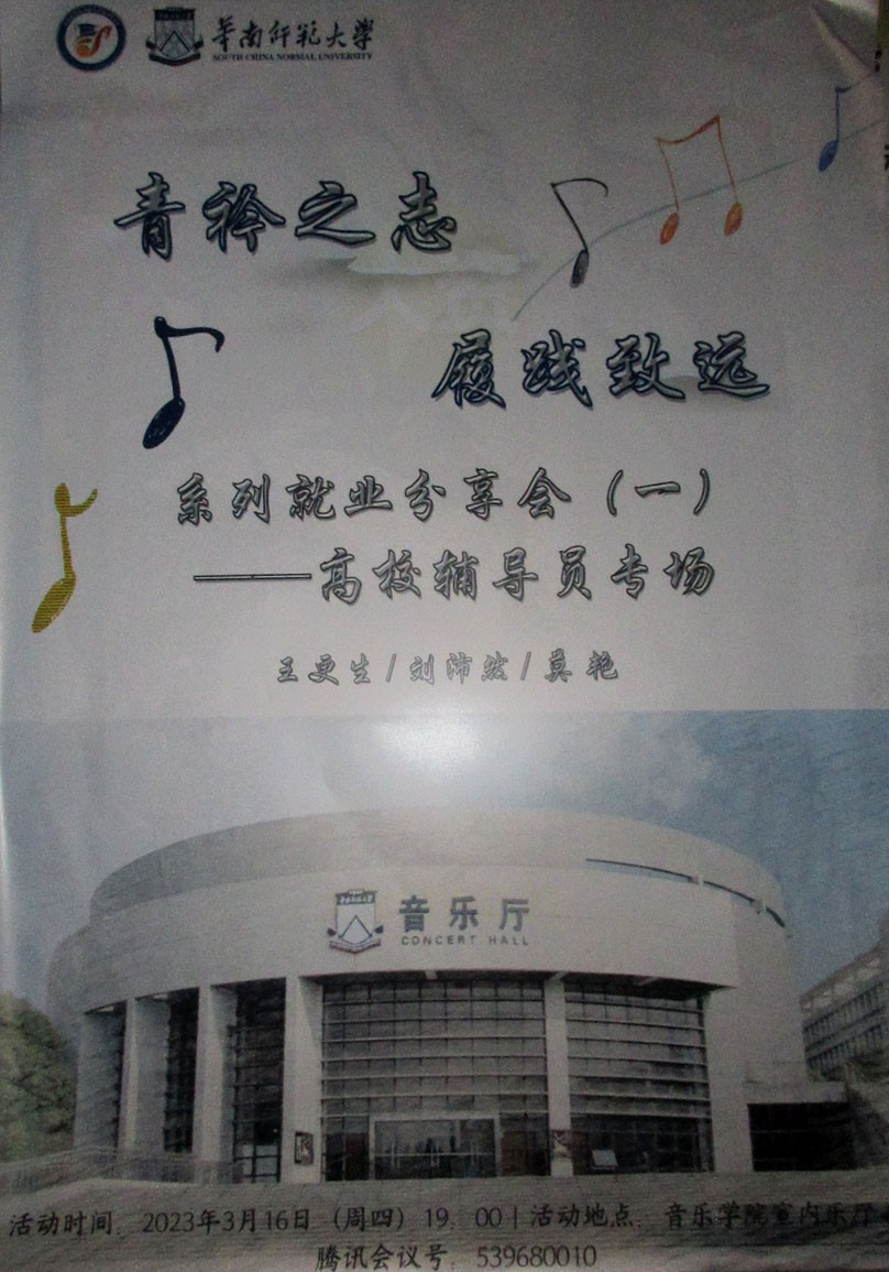 青衿之志履践致远系列就业分享会 2023.03.16周四晚19点 华师音乐学院室内乐厅 高校辅导员专场