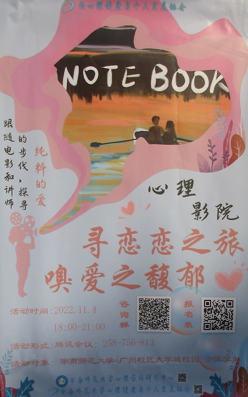 校心理健康与个人发展协会 NOTE BOOK-心理影院 2022.11.04 18点-21点 在线观看 扫码进入咨询群&填写报名表