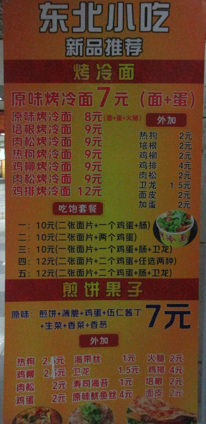 华师楠园饭堂 东北小吃新品推荐 烤冷面系列(吃饱套餐)、煎饼果子系列+外加