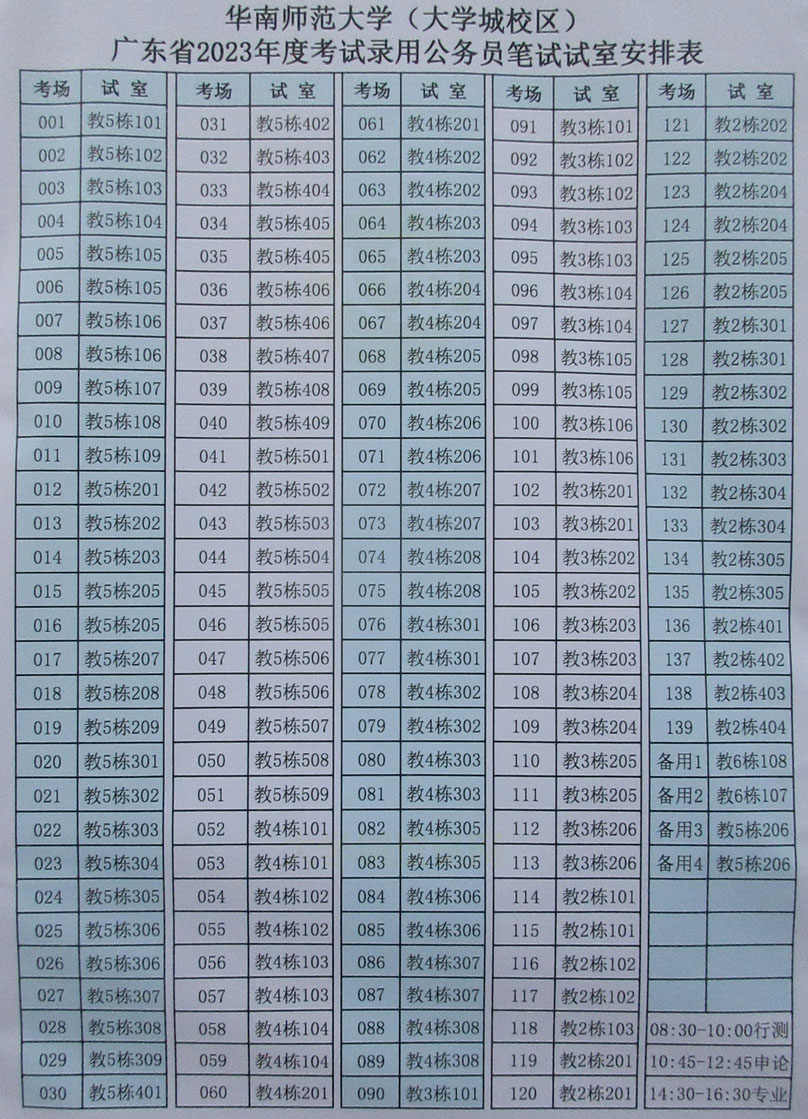 大学城华师教学区明天将作为省公务员考试考场 附具体考试试室安排表及考场示意图