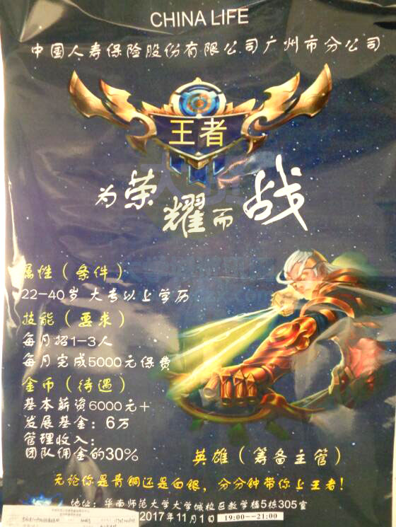 中国人寿广州分公司招聘筹备主管宣讲会11月1日晚7点到9点教5-305