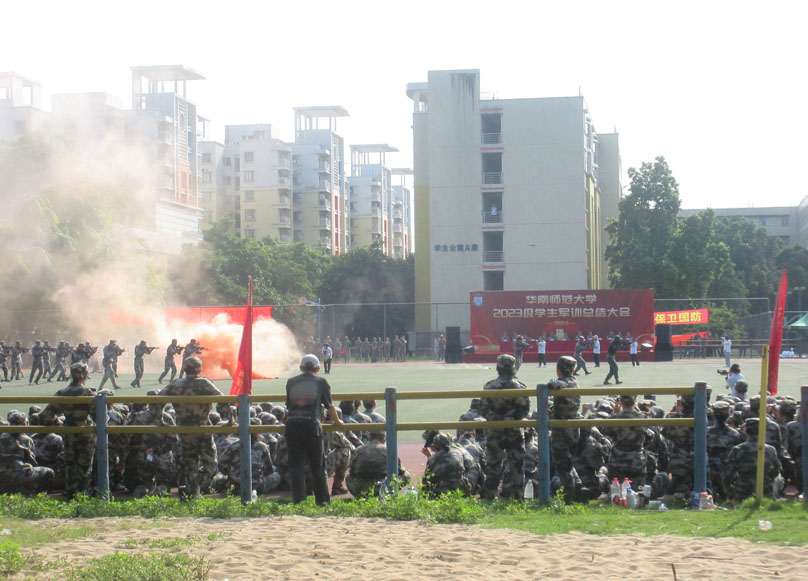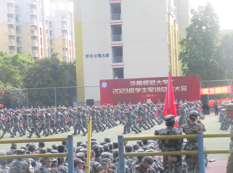 | 华南师范大学大学城校区2023级本科新生军训总结检阅汇演今上午在南生活区运动场进行 | ||||||