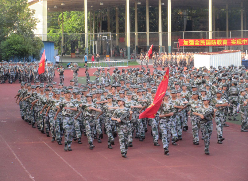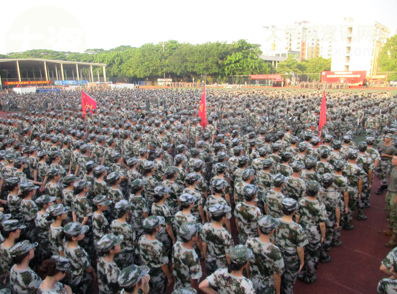 军训检阅在早上8点半左右开始,天气太阳光已经比较照射,略带热感 下面是昨天傍午彩排时的分列式部分,天色和温度感觉都较适中