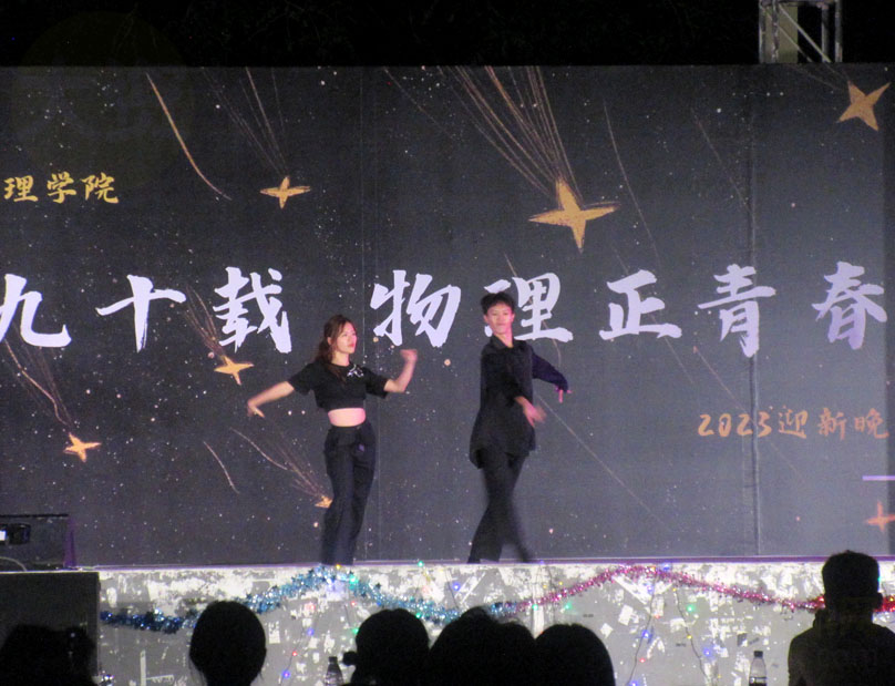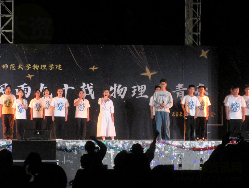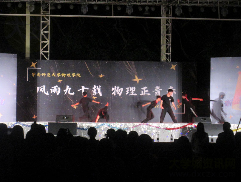 华南师范大学物理学院2023级迎新晚会今晚在大学城华师南生活区风雨球场舞台进行 以下是演出下半部分后四个节目现场
